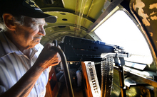 World War Two veteran Sam Wyrouck takes a flight in the "Memphis Belle," a restore