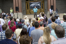 "We can't live in this state without The Tribune," shouted KRCL's Troy Williams, who served as master of ceremonies and introduced speakers, including former Tribune owner Phil McCarthey, cartoonist Pat Bagley and former columnist Peg McEntee.