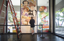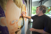 Saturday night, he unveiled the wall-size mural "Sinners and Saints: 10 Notable and Notorious Utahns," which he created as part of the residency.
