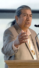 Former Utah Director of Indian Affairs Forrest Cuch speaks of his son David Arapene Cuch, who died in his third year of law school at the University of Utah in 2007. Friends, family, and members of the Ute Tribe gathered at the University of Utah Friday May 30 to announce a new law school scholarship for members of the Ute tribe to honor him. The scholarship will be funded by his friends and family.