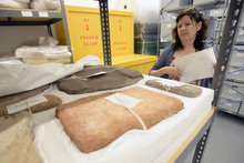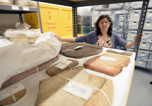 Many of the perishable artifacts made from organic fibers, such as sandals, cordage, baskets and feathered blankets, are in temporary storage at the Natural History Museum of Utah, whose new facilities near Red Butte Canyon can more precisely control temperature and humidity.