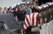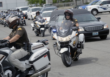 "It's an absolute honor to show our respect" to a fellow officer, said UHP Col. Daniel Fuhr. Besides the more than 25 officers who started the procession at the airport, more officers from around the state were due to join the motorcade as it progressed, Fuhr said, though he did not have an exact head count.