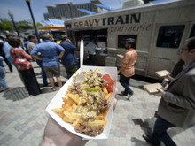 Poutine Your Mouth • When they're not working their day jobs in technology sales or explosives research, Salt Lake City residents Jennifer Buckallew and Ted Warner are serving gourmet poutine at festivals and fairs across the country and in Utah. Since opening in February, they've been to California's famed Coachella and Lightning in a Bottle music festivals, San Francisco's Oyster Festival and Utah's Pride. This week they were headed to Electric Forest Festival in Rothbury, Mich. Once they set up shop, they offer traditional and specialty poutine think bacon and maple drizzle with a sunny-side-up egg or loaded baked potato. Buckallew said the savory sauce that's served with all the poutine is vegan, vegetarian and gluten-free.