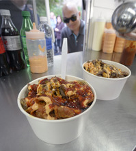 Cupbop • After working for an advertising company, Jung Hun Song started this food truck that specializes in Korean barbecue served in a to-go cup. Offerings include beef, spicy pork, chicken or a meat combo served over rice and vegetables. There's also noodles and mandu, Korean-style potstickers. The meat marinades and sauces are family recipes, said Jung, whose energetic attitude when taking orders he calls himself the "sexy hot boss" is part of Cupbop's charm.