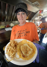 A Guy & His Wife Grilled Cheese • Owners Troy Atkinson and Kim Taylor celebrate cheesy goodness, from the basic "Plain Jane" grilled cheese to the massive "Big Cheese," a quarter-pound hamburger patty between two grilled cheese sandwiches. There's also a taco, BLT and island teriyaki (chicken and pineapple) grilled cheese.