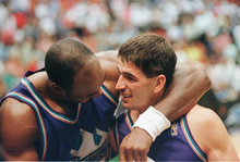 Last but not least, Stockton rounds out this amazing draft class. Stockton, a Jazz legend, is arguably the best point guard in NBA history outside of Magic Johnson. He was a leader, a floor general and a facilitator, always putting his teammates in a position to succeed and score. He worked hard defensively and was durable, playing in at least 78 games per season in all but two years of his career. Stockton formed the best pick-and-roll partnership in the history of the league with Karl Malone, the duo combining for 2,938 games and 56,085 points over their careers. He won two Olympic gold medals with the U.S. Men's Basketball team and appeared in two NBA Finals series, running into Jordan and the Bulls. Stockton was selfless and a fierce competitor, defining success at the point guard position in the '90s and long afterward.