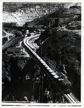 In 1906, Utah Copper mounted steam shovels on railroad tracks to strip away 75 feet of surface rock to expose large deposits of low-grade ore and provide a profitable way to convert the copper-laced mountain into a copper pit.