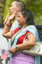 As part of America's Freedom Festival celebrations in Scera Park, a special ceremony gave the oath of allegiance to 15 new citizens each holding a small American flag from Bhutan, Canada, Chile, China, Finland, Mexico, Nepal, the Netherlands, Panama, Somalia, Tonga, the United Kingdom and Western Samoa.