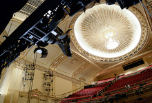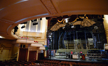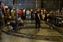 The Broadway touring show of "Wicked" gets loaded in at the Capitol Theatre for a 6 1/2-week run as crews pull gear and backdrops into the rafters.