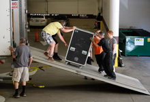 Truck after truck gets unloaded as the Broadway touring show of "Wicked" gets loaded in at the Capitol Theatre for a 6 1/2-week run on Tuesday, July 8, 2014.