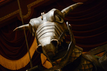 A giant steel dragon looms over as the Broadway touring show of "Wicked" ge