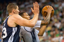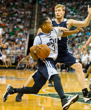 That seemed to be true. It's much too early to draw conclusions, but Exum looks fluid on the floor and quick. He's not a vertical player, but he can move. And he can pass. And he looks easily for open teammates. On one possession, Exum drove the baseline and drilled a pass to Trey Burke in the corner, from where Burke dusted the net with a 3. On another, he had his pocket picked, giving up the ball and a layup on the break.