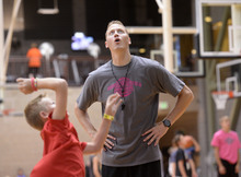 The foundation gives him perspective. His work with the Jazz's pregame and postgame shows reconnects him to people from his NBA past. And coaching, including this week's Johnsen & Johnsen camp with his older brother, Jeff, makes him think about his family's future. Houston, who's 9, "dreams of playing in the NBA," Lindsey Johnsen said.