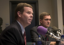 Utah Attorney General Mark Shurtleff, left, and Utah Attorney General candidate John Swallo