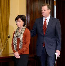 Utah Attorney General John Swallow and his wife, Suzanne, enter a news conference where Swallo