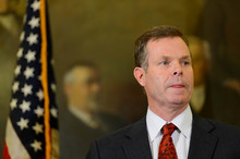 Attorney General John Swallow talks to members of the media outside of his office at the Utah State Capitol Wednesday June 19, 2013.