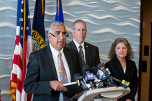 Salt Lake County District Attorney Sim Gill announced the charges at a news conference held at the FBI office in Salt Lake City. Gill praised the FBI for continuing to work on the case and scolded the DOJ's Public Integrity Section for backing away last September.