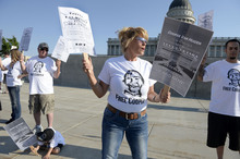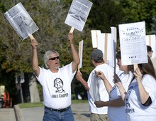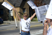 The protesters, wearing white "Free Cooper" T-shirts, waved signs demanding Van Huizen's release from the Daggett County Jail, where he has been since May 23. Before that, Van Huizen was in a cell at the Utah State Prison with a camera constantly filming him and the sounds of the mentally ill inmates muttering to themselves outside his cell.
