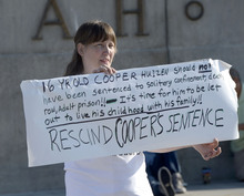 About two dozen people rallied Wednesday morning in front the Capitol to protest a prison sentence imposed on 16-year-old Cooper Van Huizen.
