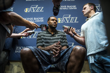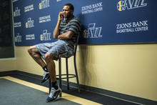 "On the court, I'm focused. I'm going to do whatever I can to win. If that means knocking you out of the air, I'm going to do it," he said Tuesday, as the newest member of the Utah Jazz met with reporters in Salt Lake City. "Off the court, I'm just a laid-back, chill guy. But when you get me on the court, I'm just an animal."