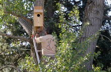 Oleyar and his colleague, aptly named zoologist Shawn Hawks, spent a recent Friday morning putting up boxes in the east central valley. Besides Tanner Park, the Hawkwatch team placed boxes in nearby Canyon Rim Park and above Interstate 215 at the base of Grandeur Peak.