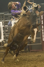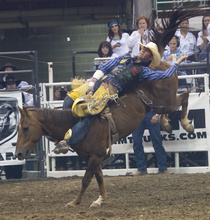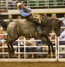 Rusty Allen of Eagle Mountain won the saddle bronc when he scored a 90 aboard two-time Horse of the Year Spring Planting.