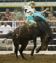 In barrel racing, Nancy Hunter of Neola overtook the leaders with an arena record run of 13.05 seconds.