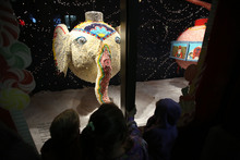 The SLCC fashion institute/visual merchandising class had the help of 15 students and 170lbs of candy to assemble their white elephant. For the second year, Macyís unveiled the holiday candy windows at Macyís City Creek on Thursday, Nov. 21, 2013. The windows which kick off the holiday season, are made entirely out of candy and reflect Salt Lake City and the luster of the holiday season. Six local artists were chosen to design the windows.