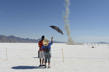 Instead of driving into town and spending the day having ruinous fun in the casinos, we turned north onto the Salt Flats, where the real action was. Say what you want about shooting the moon at craps, there's greater risk shooting at the moon for real.