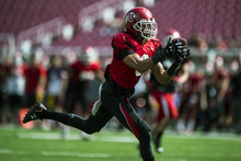 Time to shine • Senior tight end Westlee Tonga will be 26 the day after the Idaho State game, and to this point of his college career he has just seven catches for 79 yards. Now's his chance. The 6-foot-4, 252 pounder with Downy soft hands seems likely to play a key role in Dave Christensen's spread offense.