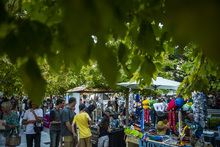 Festival attendees look at local art at Craft Lake City at the Gallivan Center Friday Augu