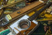 Acoustic and electric guitars made from cigar boxes by artist Bret Hanson at Craft Lake Ci