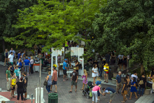 Festival attendees look at local art at Craft Lake City at the Gallivan Center Friday August 8, 2014.