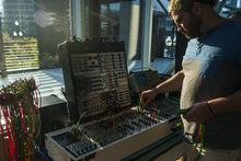 Softwire Synthesis' Lance Iden displays his modular synthesizer in Craft Lake City's Science & Technology building at Craft Lake City at the Gallivan Center Friday August 8, 2014.