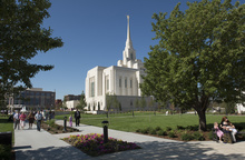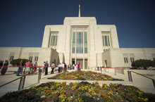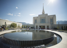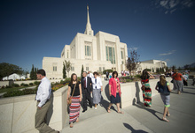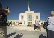 Guests  snap photos and explore the grounds of the Ogden Temple, on the first day of the public open house, Friday, August 1, 2014.  The temple will be formally rededicated in three sessions on Sunday, September 21, 2014