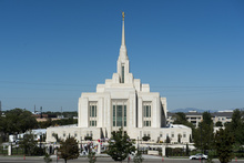 The Ogden Temple, on the first day of the public open house, Friday, August 1, 2014.  The temple will be formally rededicated in three sessions on Sunday, September 21, 2014