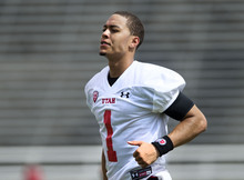 The quarterback battle is really happening. • Sure, Travis Wilson vs. Kendal Thompson has been a talking point for months ever since it became clear that Wilson was coming back and Thompson was coming at all. But until Monday, most Utah media hadn't seen him sling a pass. Now we know it's not just all talk: Thompson wasn't perfect, but he wasn't bad. And although Wilson has a lot of credibility and experience, coaches aren't giving it to him just yet. Kyle Whittingham described it as "the most important" position battle for the team right now. Matt Piper broke down the competition today, and it will be fascinating to watch it develop. Perhaps notably, receiver Kenneth Scott said he had no preference on quarterback: He feels that any of the Utes' options can help them win games.