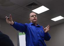 "I'm not sure if I'll resign," he told about 90 people crammed into a classroom. "The judge may replace me. That's a possibility. Or she may use these motives to appoint a board of trustees."