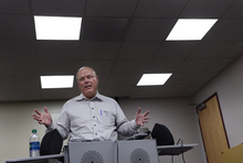 Wisan spoke Saturday at a public meeting at Mohave County, Ariz., Community College in the morning and in the evening El Capitan School to discuss the latest issues facing the UEP. It was the first time he addressed an audience since he was charged Tuesday in Taylorsville Justice Court with a misdemeanor count of patronizing a prostitute. Wisan has pleaded not guilty.