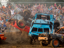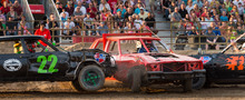 Lt. Gov. Spencer Cox, center, gets crunched in the Dog Days Demolition derby at the Salt Lake County Fiar, Saturday August 9, 2014.