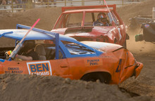 Lt. Gov. Spencer Cox, rear, slams into Salt Lake County Mayor Ben McAdams in the Dog Days Demolition derby at the Salt Lake County Fiar, Saturday August 9, 2014.