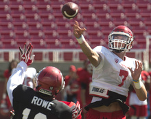 Ute QB, Kendal Thompson looks to pass during practice at Rice Eccles Stadium, Wednesday, Augu