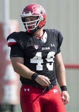 Defensive end Hunter Dimick, at University of Utah football practice, Saturday, August 9, 201