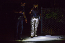 Police search for evidence at the scene of a shooting in South Salt Lake on Thursday night at 3790 South, 200 East where one person was taken to the hospital in critical condition while 3 to 4 individuals were detained.
