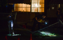 Police search for evidence at the scene of a shooting in South Salt Lake on Thursday