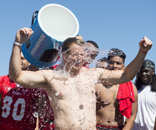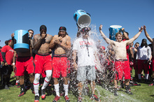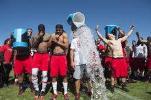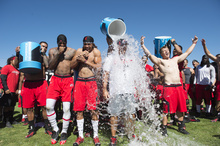 The #Utes get dumped for the ALS ice bucket challenge. WR Kenneth Scott talks about the challenge and the receivers. http://t.co/9ky7L5Nssi