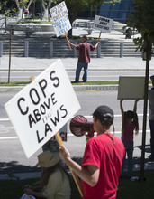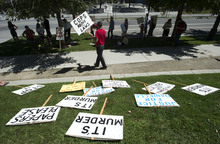 Protesters lined the sidewalk across the street from Salt Lake City police headquarters Monday afternoon to express their outrage at a spate of recent police shootings of unarmed people.