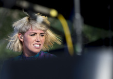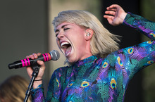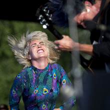 Grouplove's Hannah Hooper performs as the band co-headlines with psychedelic pop-rock band Portugal. The Man during a sold-out show at the Red Butte Garden Amphitheatre in Salt Lake City, Tuesday, August 19, 2014.