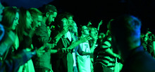 Grouplove members Hannah Hooper and Christian Zucconi fire up the crowd as the band co-h