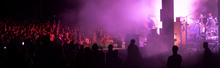Colored lights illuminate the stage as fans watch Portugal. The Man, as they co-headline